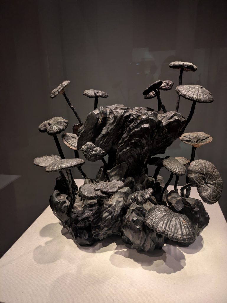 このキノコ(マンネンタケ)は吹上御所で採取されたものを乾かして漆を塗ったものだそうで…。