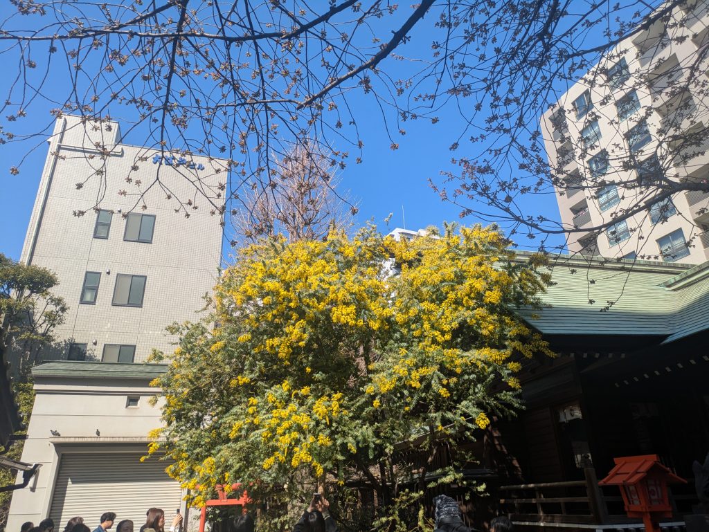 さて、今日は先週末の話、東京マラソンの前日に蔵前神社にミモザを見に行ってきました。
