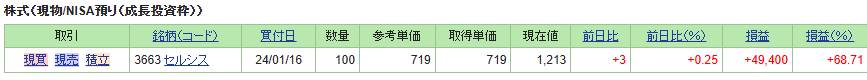 といいつつ、値段が下がってきたらセルシスももう100株買い足すかもしれません。