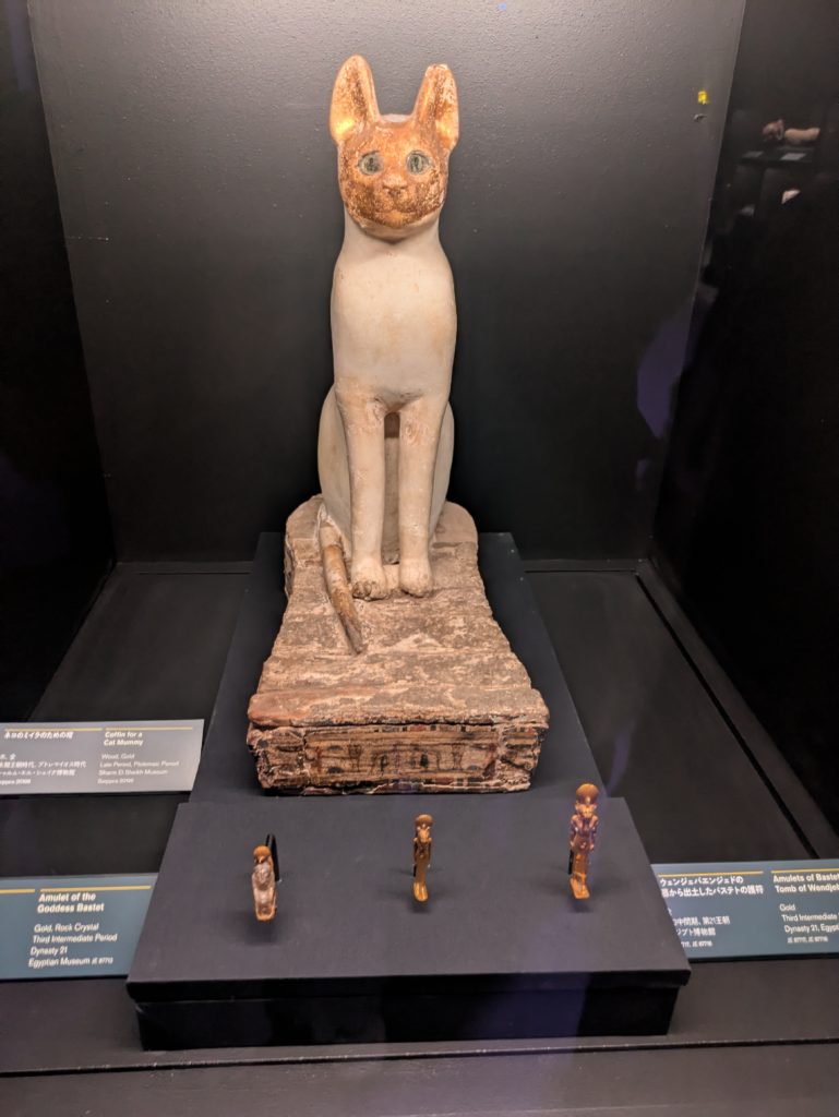 副葬品としての動物のミイラもあり、猫のミイラの入れ物がすごくかわいかったです。