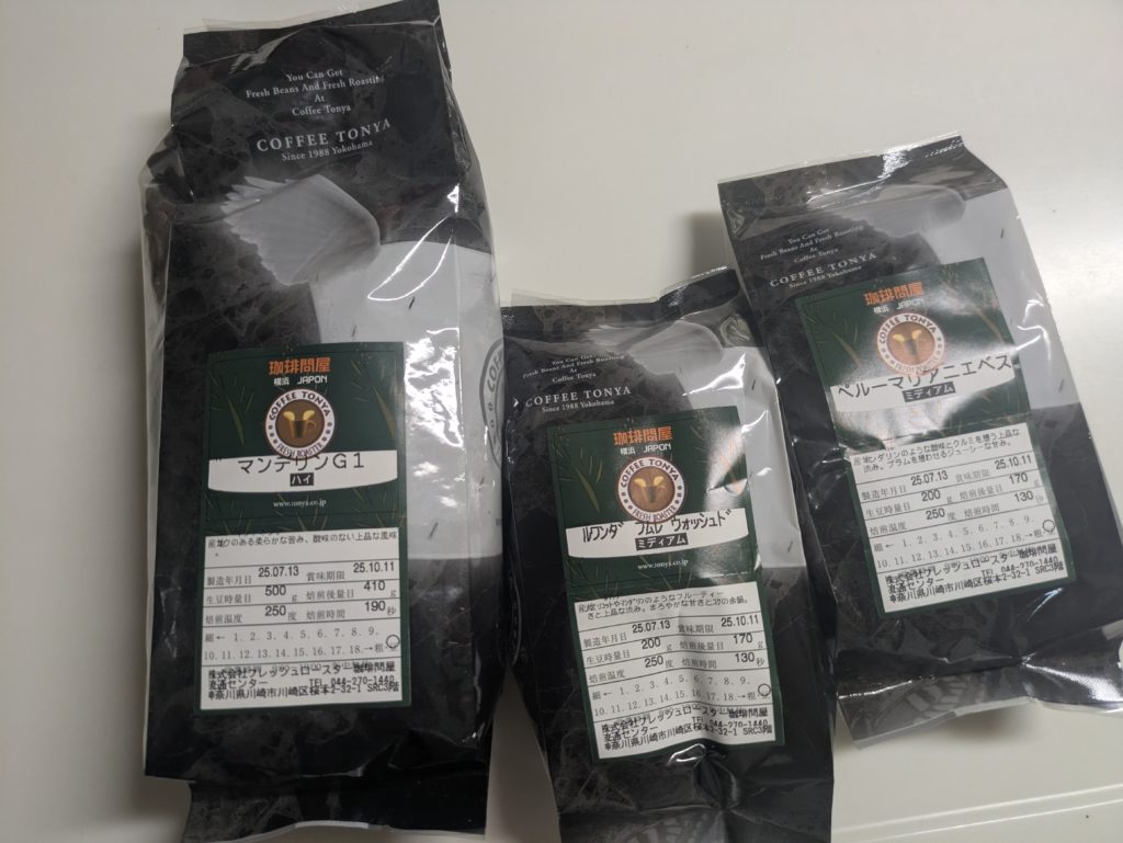今回は定番のマンデリンと、気になったセール品の豆を二種類買ってみました。