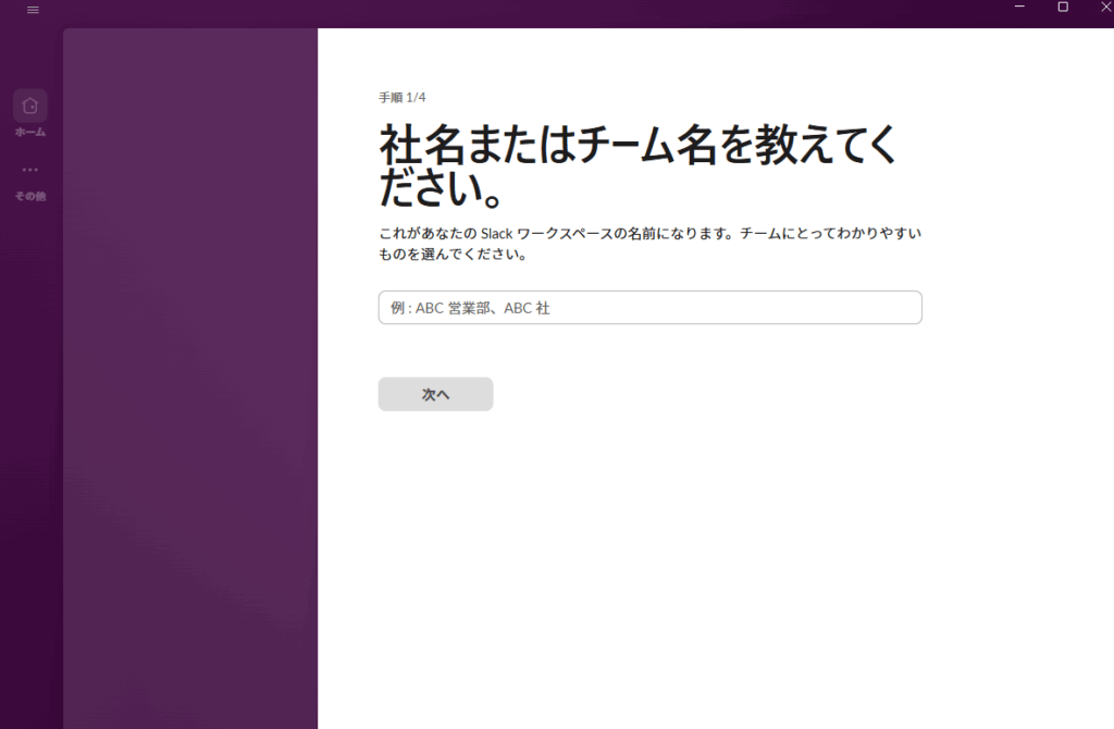 ワークスペースには会社名や部署名を入れるのが推奨とあります。
