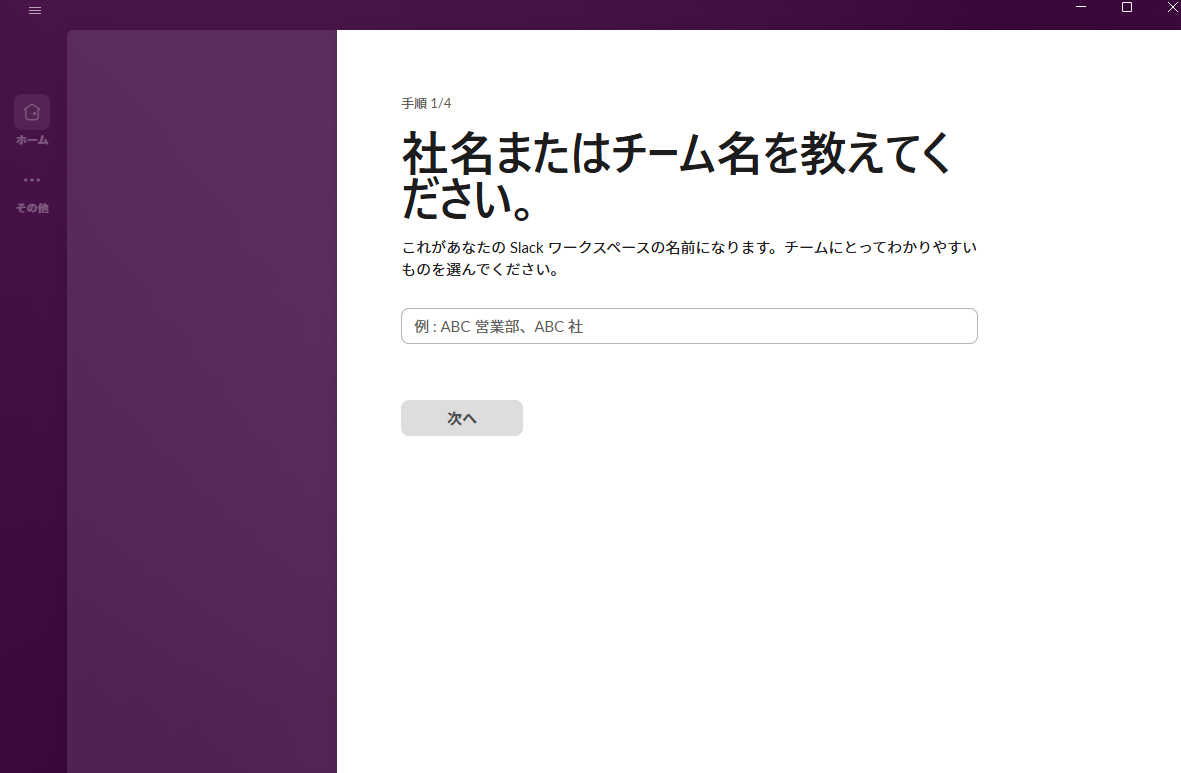 ワークスペースには会社名や部署名を入れるのが推奨とあります。