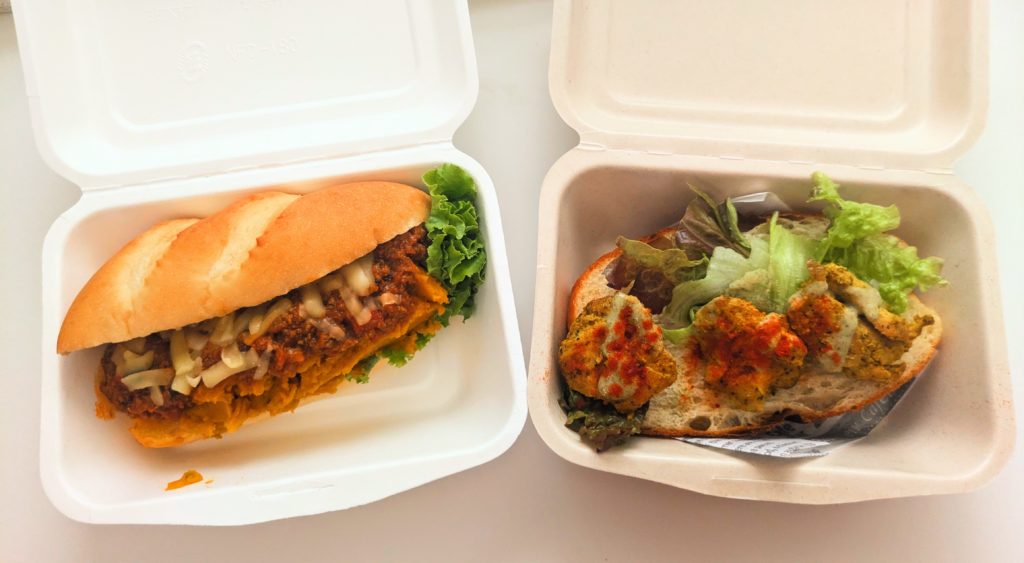 こじはんさんのカボチャバターとトマトキーマのもっさり―サンド(左)