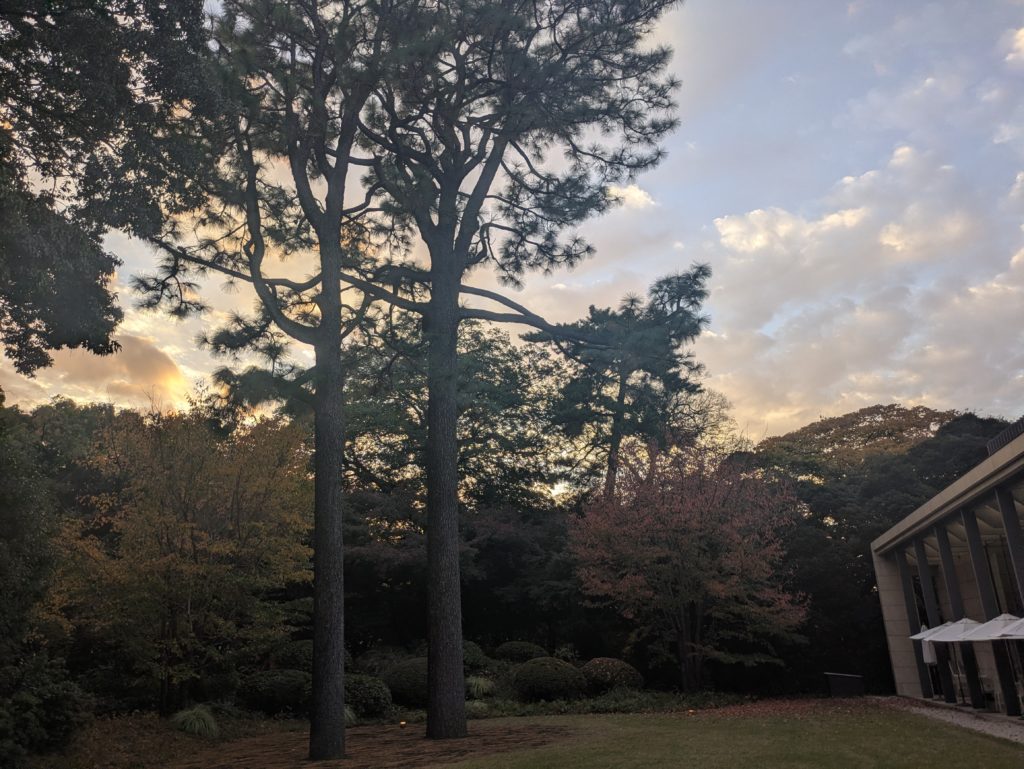 お屋敷を出た時の夕焼けと紅葉、とてもきれいでした。