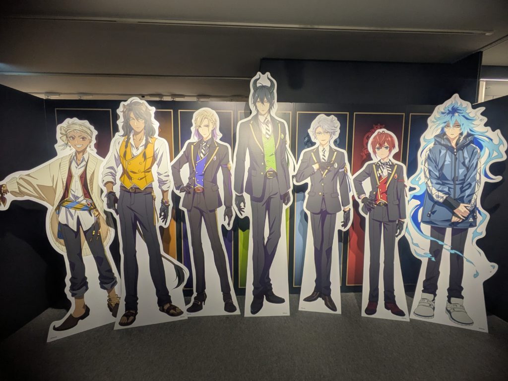 展示はアニメ絵の寮長たちの等身大パネルです。