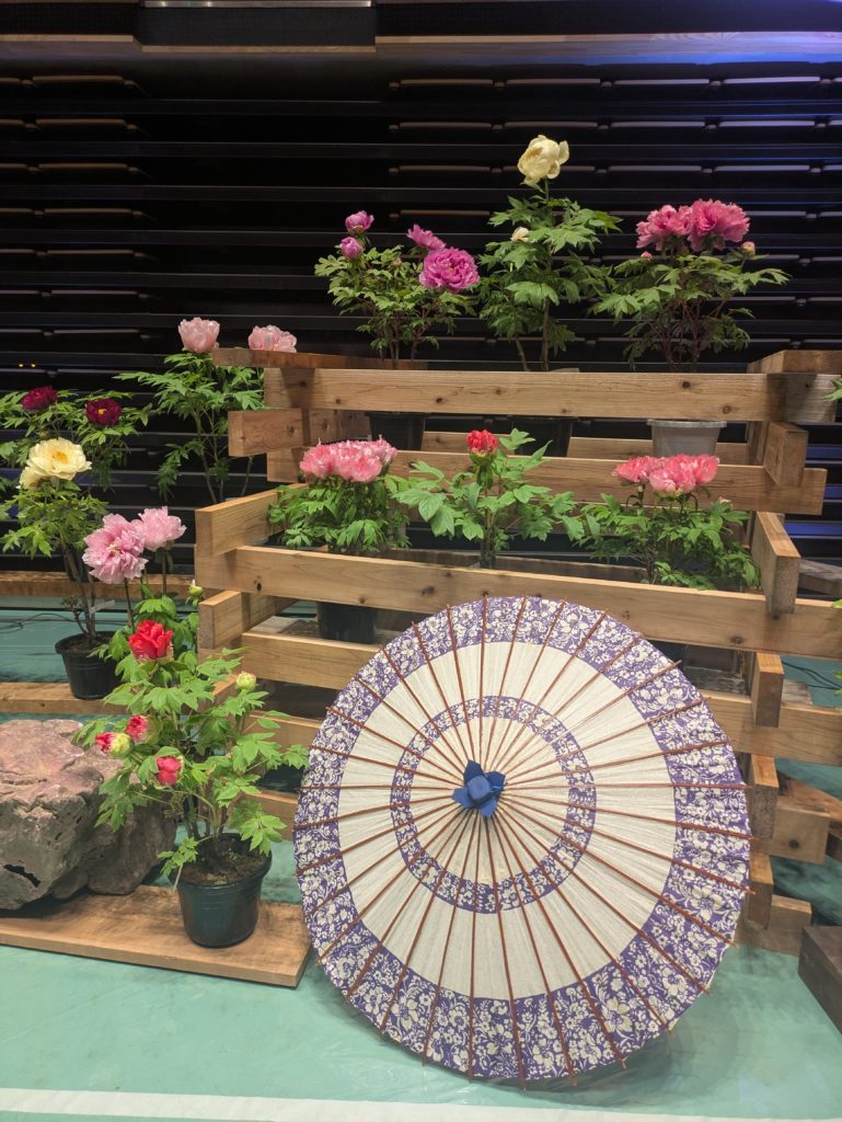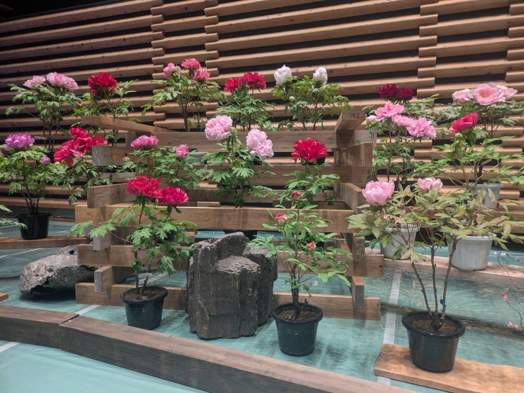 会場では苗が販売されているほか、カフェスペースも設置されていて牡丹を眺めながらお茶ができます。