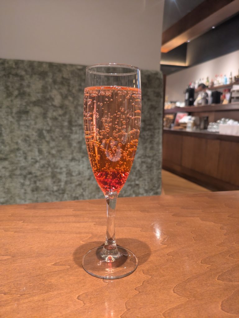 ドリンクはカウスリップ風ワインを選びましたが、追加でスパークリングも頂きました。